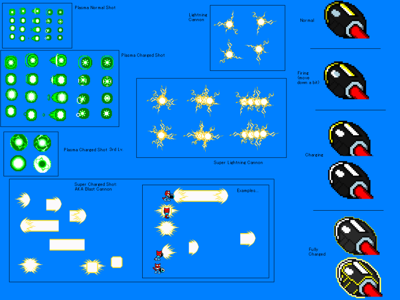 Ah, I see. Well if you're handling the sprites that makes everything way easier for me!The Hand Cannon should be easy to make then (testing/balancing aside). The push back in the 4th shot, however, will be a bit awkward to code since it would involve editing the player class a bit. The rest is pretty easy and straightforward. Are you doing HUD graphics for the weapon too or should I use the Megabuster graphics instead? Oh and about "copying" weapons. It's possible and easier to make than it sounds, so if you're willing on doing something like it, I can help with that too.And well, to be fair you were the one who asked if I took requests in, which attracted the other two I just got, so I can help you with yours first and quickly finish the other two since they're somewhat easier.