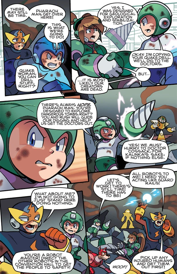 Quote from: "fortegigasgospel"Reasonable. Though I'd like to see little arguement over wither or not they did have weapons, I personally don't care as long as they fit.Maybe buster upgrades instead for those three? Ripot's could be like the super adapter, but instead of an upward thrust it allows one forward dash while in the air with a weak slow fire buster to balance the mobility.Perhaps. Also maybe a reskin of Junkman's Junk Cubes for Garbage?EDIT: Also, Quake Drill might need a slightly different HUD arm because of this page in the comic: (click to show/hide)Note how his buster turns into a drill.And don't get me started on Mass Production's hud.